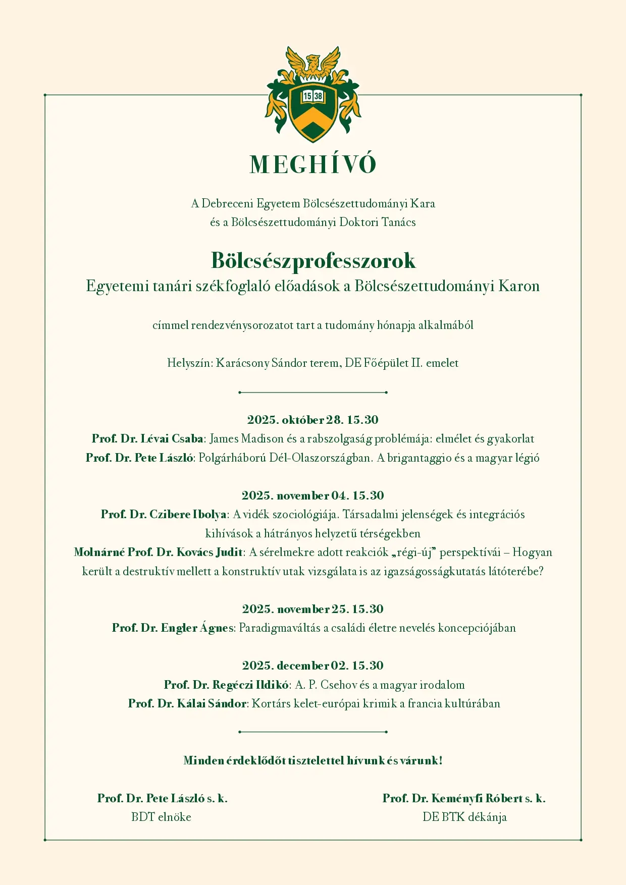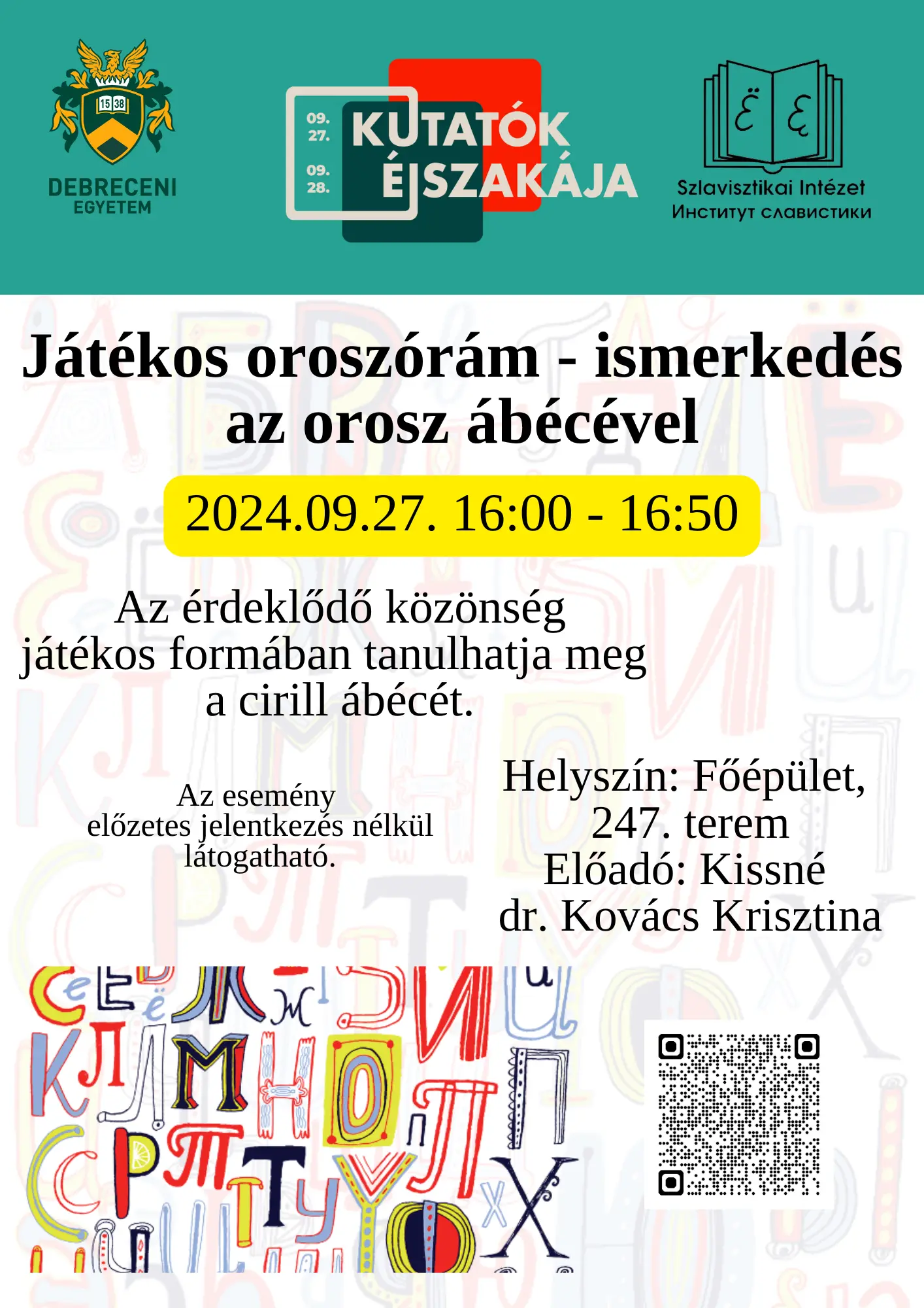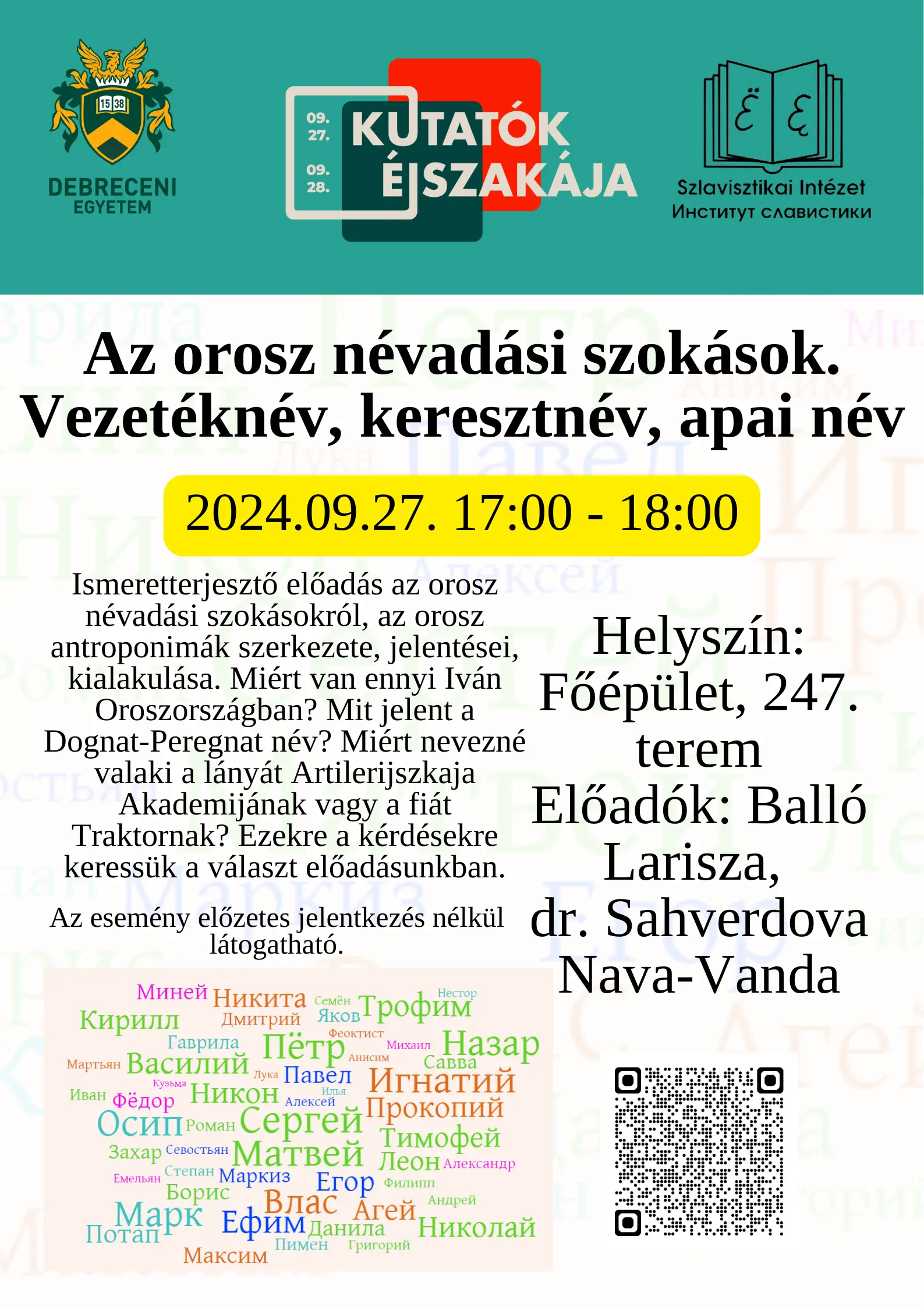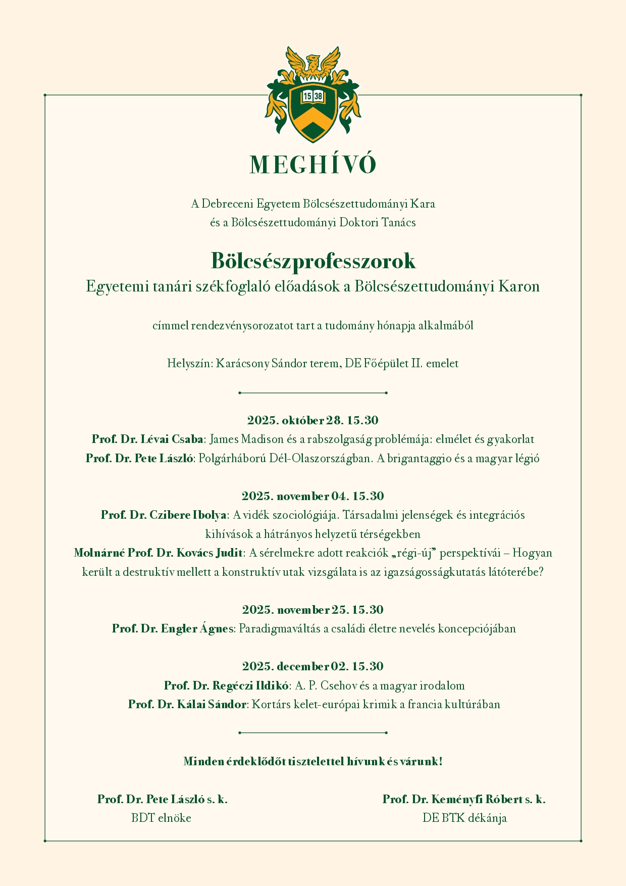 Helyszín: Debreceni Egyetem, Főépület, Egyetem tér 1., IV. emelet 431. AudMax előadó.