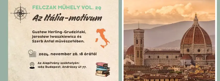 A november 26-i beszélgetés központi témája két lengyel és egy magyar író, valamint Itália lesz. Dr. Pálfalvi Lajos József Attila-díjas műfordító, irodalomtörténész, a Pázmány Péter Katolikus Egyetem Lengyel tanszékének vezetője, a Debreceni Egyetem Szlavisztikai Intézetének docense; Dr. Draskóczy Eszter, a BTK Irodalomtudományi Intézet Reneszánsz osztályának tudományos munkatársa és a moderátor, Éles Márta műfordító elemzi majd az Itália-motívumot Jarosław Iwaszkiewicz és Gustaw Herling-Grudziński lengyel írók, valamint Szerb Antal író, irodalomtörténész, műfordító művészetében.