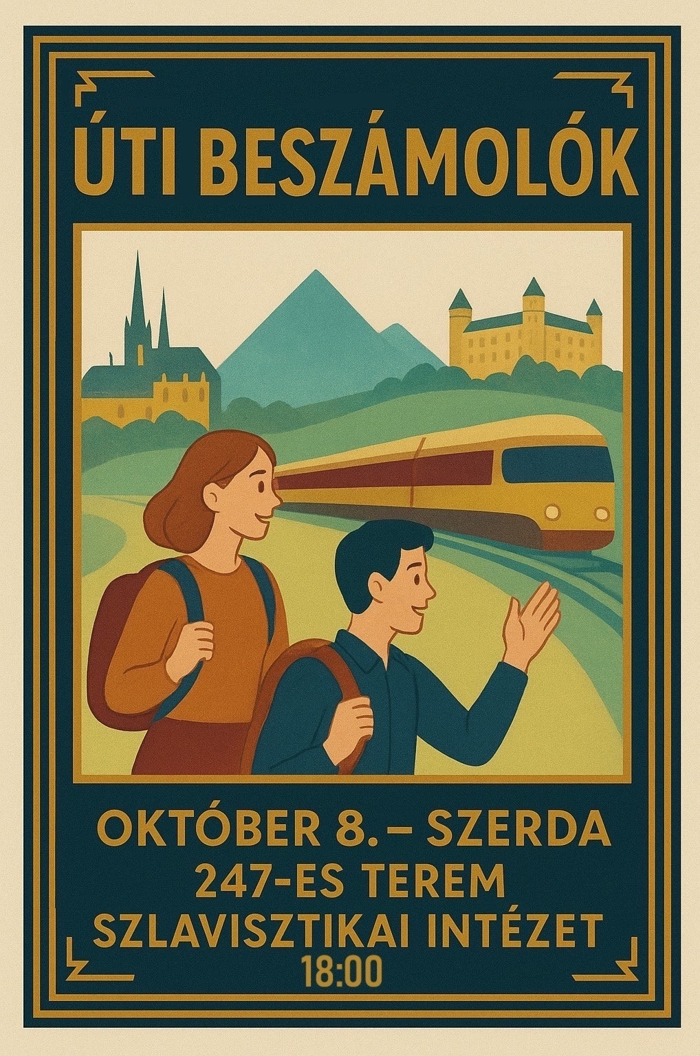 2025. október 8-án 18:00 órától a II/247-es teremben a Szlavisztikai Intézet diákjai képes beszámolót tartanak a Pannónia Ösztöndíjprogrammal megvalósított szeptemberi kirándulás eseményeiről. Olyan hallgatók is megosztják tapasztalataikat a közönséggel, akik szlovákiai, csehországi, illetve lengyel egyetemen részesültek ösztöndíjas képzésben. Szeretettel várjuk az érdeklődőket!