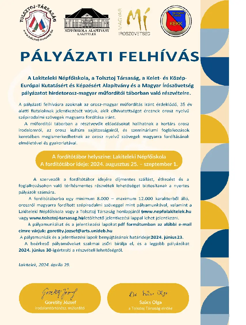 orosz–magyar műfordítói táborban való részvételre