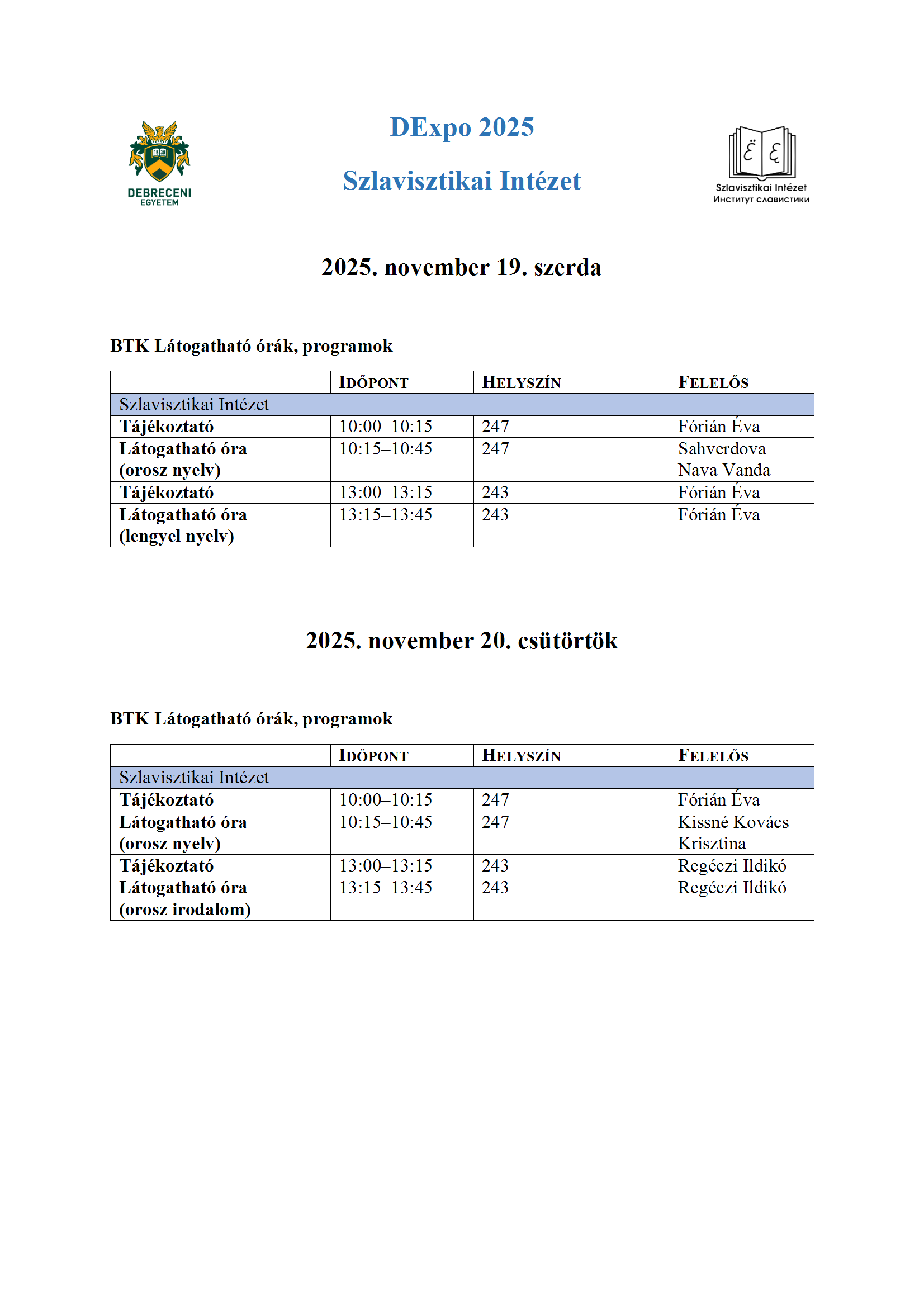 Az 1. (őszi) félévben meghirdetett kurzusok