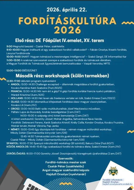 Várunk szeretettel minden kedves érdeklődőt a Fordításkultúra 2026 rendezvényen 2026.04.22-én, szerdán!