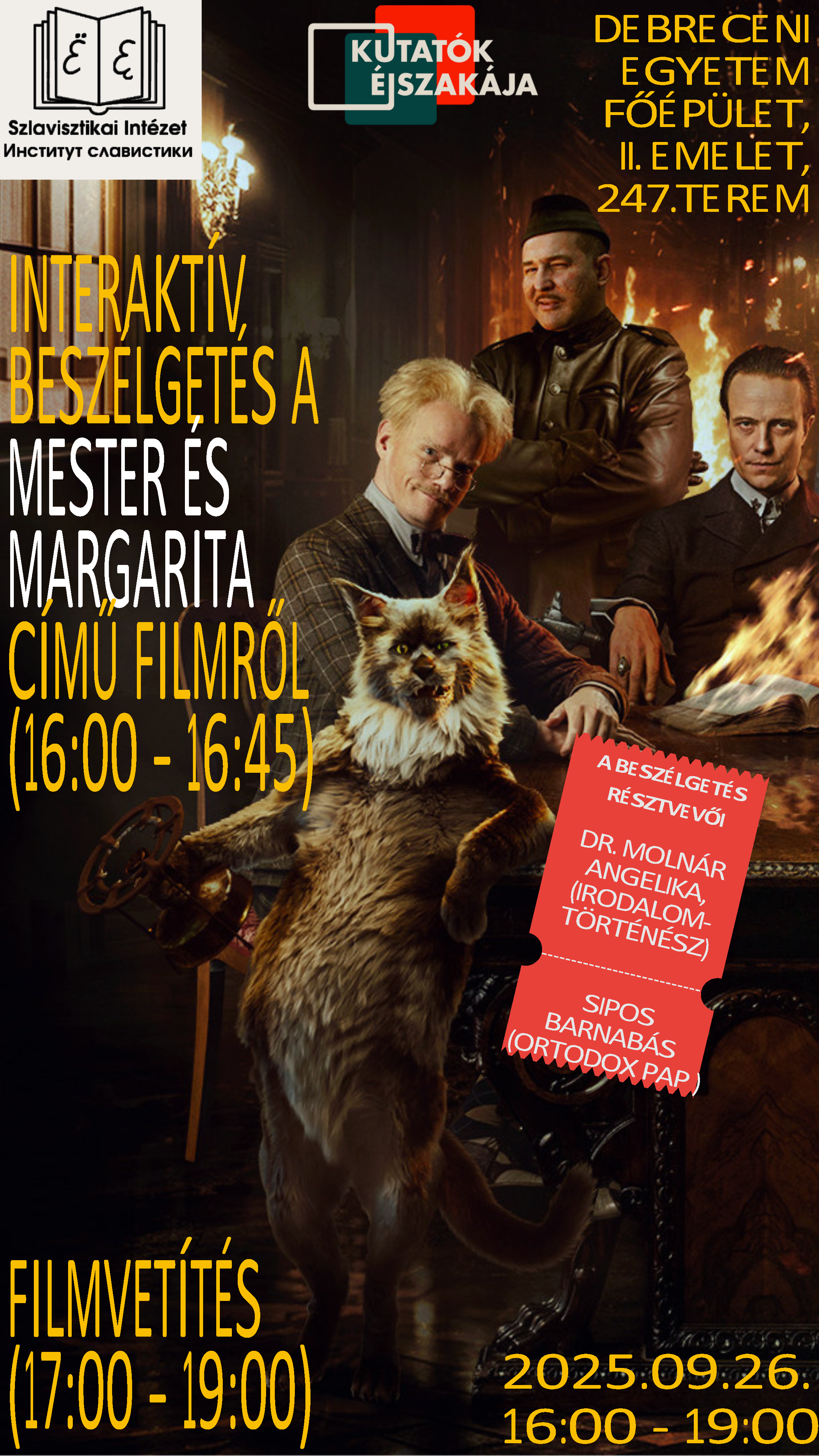 2025. szeptember 26-án 16:00 órától a Szlavisztikai Intézet docense, dr. Molnár Angelika beszélget Sipos Barnabás ortodox pappal a 2023-ban forgatott kultuszfilmről.